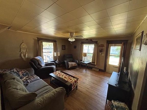 Located in Gypsum, Kansas, sits on a corner lot on the edge of town! This 2-story has 4 bedrooms, 2 baths, kitchen with lots of character. Formal dining room with built- ins and a window seat. Featuring hardwood flooring throughout, all appliances stay. Covered front porch, 2 car garage, patio with firepit. Small outbuildings. $4,200 paint allowance offered for exterior paint. Active small town has 2 festivals a year. Southeast of Salina School District, Cafe, Pizzaria, gas station, park. A quiet place to live.