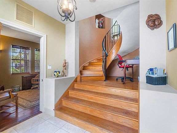 Spiral staircaseDen or officeOutdoor entertaining roomFormal dining roomLot of foliageWonderful kitchen