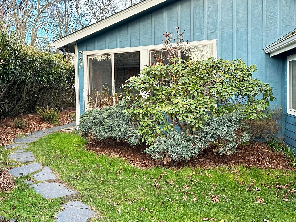 1200 sq. ft. 2 bedroom, 1.5 bath. Large kitchen with big windows, dishwasher, new stove and extensive storage space. Living room comes with bookshelves and 100% New Zealand wool carpets. Newly renovated powder room. Flex space for desk. Large laundry room with shelving. Oak flooring upstairs. Main bedroom fits king-sized bed. Linen closet and laundry chute. Bathroom has new finishes and a newly refinished bathtub. Large private patio with propane heater. Beautiful Japanese styled Bathhouse with hottub and outdoor shower. House is perfectly located, close to everything in Uptown and just a quick walk to all downtown amenities, Farmer's Market, Kai Tai and grocery stores. House is a duplex with only one short shared wall which has extra sound insulation.