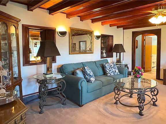 Welcome to 724 Ridge Rd in Harmony Township. On the market for the first time in over 50 years, this Tudor style 3-bedroom, 1-bath with must-see views is ready to be your next home. Heading in the front door, you’re welcomed by a large and inviting living room with polished wood beams on the ceiling. The stunning wood accented ceilings continue throughout this well-maintained home. On the main level, there are two spacious bedrooms featuring vaulted ceilings and plenty of closet space. The dining room is light and airy and leads in to the kitchen which has ample counter space, an original Dutch door, and a pantry. There is a cozy den with access to the very private covered back deck, a second deck space, and brick patio all with striking views of the valley behind the house. The third bedroom shares the view and has extra storage space. A laundry room, utility room, and family game room round out this adorable stone home.