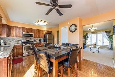 GENTLY LIVED IN EXTRA LARGE RAISED RANCH WITH GORGEOUS MANICURED LAWN! This 5 BR, 2 BA is a UNBELIEVABLE Choice for a Growing Family! Plenty of Cooks can enjoy this Oversized Kitchen with Newer Granite Counter Tops, Cherry Cabinets, Tiled Backsplash, Gleaming Hardwood Floors, Room for table and chairs, New Stainless Steel Appliances, and Pantry Closet! SLIDERS TO HUGE DECK AND BEAUTIFUL VIEWS OF THE MASSIVE BACK YARD. 3 Good Sized BRs on the Upper Level, and the Primary bedroom w/2 Closets, and Shared Bath with New Granite Vanity, and New Flooring! Lower Level Features Spacious Family Room with Warm Fireplace, Built In Bookshelves, Laundry Room with Washer & Dryer, Full Bath again with New Vanity, and New Flrs! BR4 & Poss BR5 (Currently Office) too! Game room with pool table, and unique game closet . Possible In-Law or Teen Arrangement! Huge Deck 20x10 with Massive Yard for the Kids or entertainment fun! Attached 2-1/2 C Gar. Newer EGDO. New Roof 2015 w/Power Fan. New Carrier 90,000 BTU F/A Furnace w/20 Yr Warranty in 2017 and a 3 Ton Carrier A/C with 10yr Warranty. Whole House Fan. New Sliding Glass Dr & Window in Kitchen. This home is move in condition and just not enough paper to list everything. Come see how proud ownership shines thru out.....
