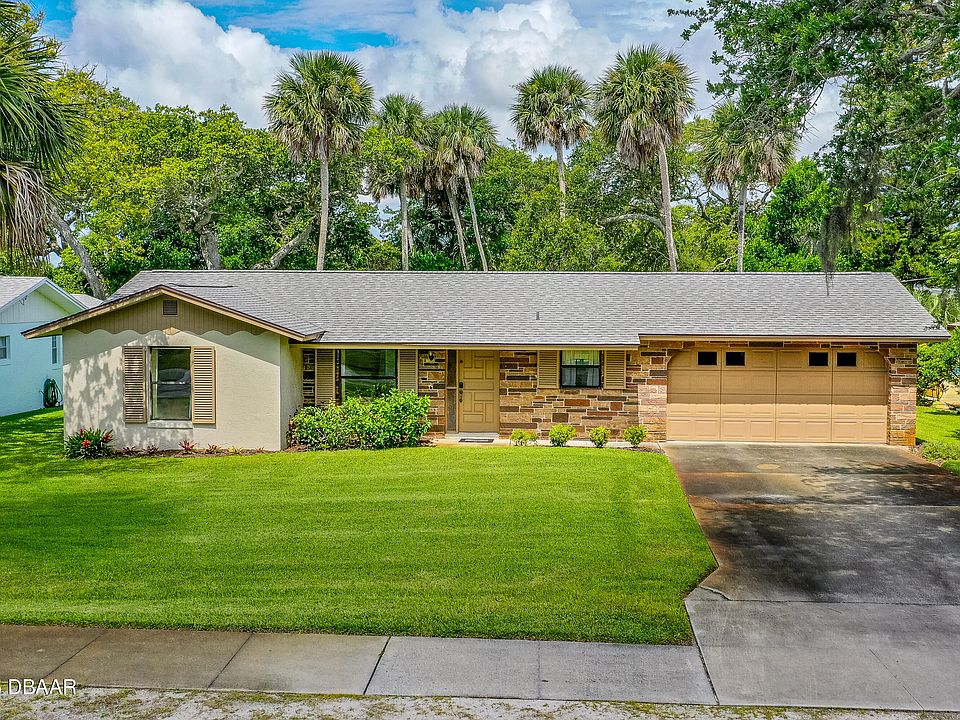 IF YOU ARE LUCKY TO LIVE IN NEW SMYRNA BEACH, YOU ARE LUCKY ENOUGH! THIS BEAUTIFUL HOME CAN MAKE YOU LUCKY ENOUGH. THIS MOVE IN READY HOME HAS BEEN IN THE SAME FAMILY FOR DECADES AND THE LOVE AND CARE THEY HAVE SHOWN IS APPARENT WHEN YOU DRIVE IN THE DRIVEWAY AND WALK IN THE FRONT DOOR. THIS GEM OF A HOME CENTRALLY LOCATED IN NEW SMYRNA BEACH WHICH IS KNOWN FOR ITS LAID-BACK VIBE, STUNNING BEACHES, WALKING AMENITIES ESPECIALLY AROUND FLAGLER AVENUE WHICH IS A HUB FOR DINING, SHOPPING AND ENTERTAINMENT. SITUATED ON A LARGE 75X140 LOT WITH LUSH PALM TREES AND BEAUTIFUL TREES THAT ADD TO THAT OLD FLORIDA FEELING. THIS SOLID BLOCK HOME WITH A RECENT ROOF (LESS THAN 5 YEARS OLD), NEW HVAC, GRANITE COUNTER TOPS - DURABILITY AND LOW MAINTENANCE ARE KEY FACTORS AND A BIG WIN FOR OWNING THIS REAL ESTATE INVESTMENT. THE BONUS ROOM WITH CATHEDRAL CEILINGS AND FLOOR TO CEILINGS WINDOWS OVERLOOKING A LUSH BACKYARD IS A DREAMY SPOT FOR RELAXING AND ENTERTAINING. THE OUTDOOR SHOWER AND GOLF CART FRIENDLY LOCATION SCREAM BEACH LIFESTYLE. THE FACT THAT ITS MOVE-IN READY MAKES IT APPEALING FOR RETIRES, VACATION HOME SEEKERS, OR INVESTORS LOOKING FOR A TURNKEY RENTAL PROPERTY. THE LARGE TWO-CAR GARAGE WITH WASHER AND DRYER, MOP SINK AND ADDITIONAL EXIT DOOR, SPRINKLER SYSTEM ON A WELL, AND PUBLIC UTILITIES ADD PRACTICALLY TO YOUR PURCHASE. THE 2-BED, 2-BATH LAYOUT WITH A SPACIOUS (25x14 ft) BONUS ROOM OFFERS FLEXIBILITY - MAYBE A HOME OFFICE, GUEST SPACE, OR MEDIA ROOM. THIS MAGNIFICENT PROPERTY IS EASY TO SHOW. DON'T JUST DAY-DEAM ABOUT BEACH LIFE... JUST DO IT!