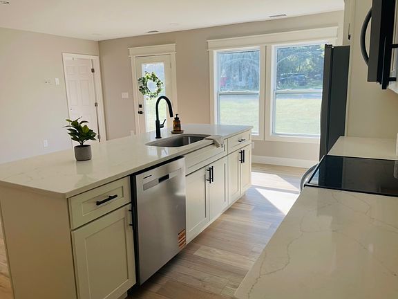 Private side yardStainless steel appliancesOpen layoutModern finishesBright and airy kitchenLuxury vinyl planksWhite cabinetry