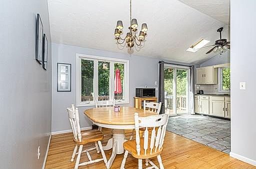 - Din Dscrp: Flooring - Hardwood, Window(s) - Bay/Bow/Box, Lighting - Pendant, Ceiling - Vaulted