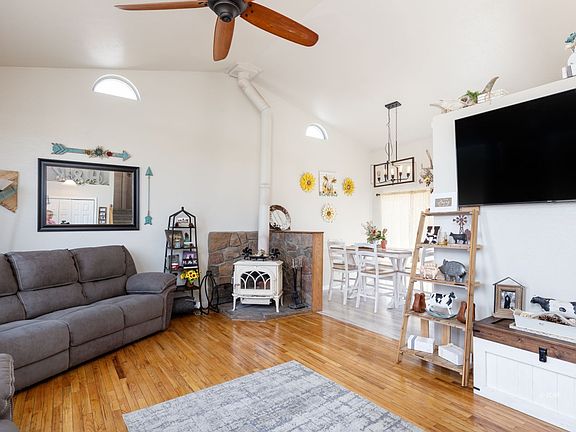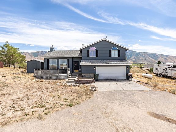 Welcome to 724 Thorpe Drive. This home boasts 3 bedrooms, 2.5 bathrooms with 1,734 SF. As you step through the front door onto the living room's beautiful hardwood floors, you'll see a wood burning stove with rock wall accent perfect for those fall evenings to come. Off the living room you can step into the kitchen or dining room, both with amazing views of the Rubies. Kitchen features plenty of storage in the pantry, lots of counter space, with a new oven and dishwasher both replaced only 2 years ago! Ample room for family gatherings in the living room and lower level family room! The quiet family room steps out to the back patio with a stunning view of the Ruby Mountains. Half bathroom and laundry room conveniently located a step away from the family room and the entrance to the garage. Upper level features primary bedroom and bath with double vanity and over sized walk in closet, two guest bedrooms with vaulted ceilings and a guest bath. BONUS! New furnace installed 2 years ago.