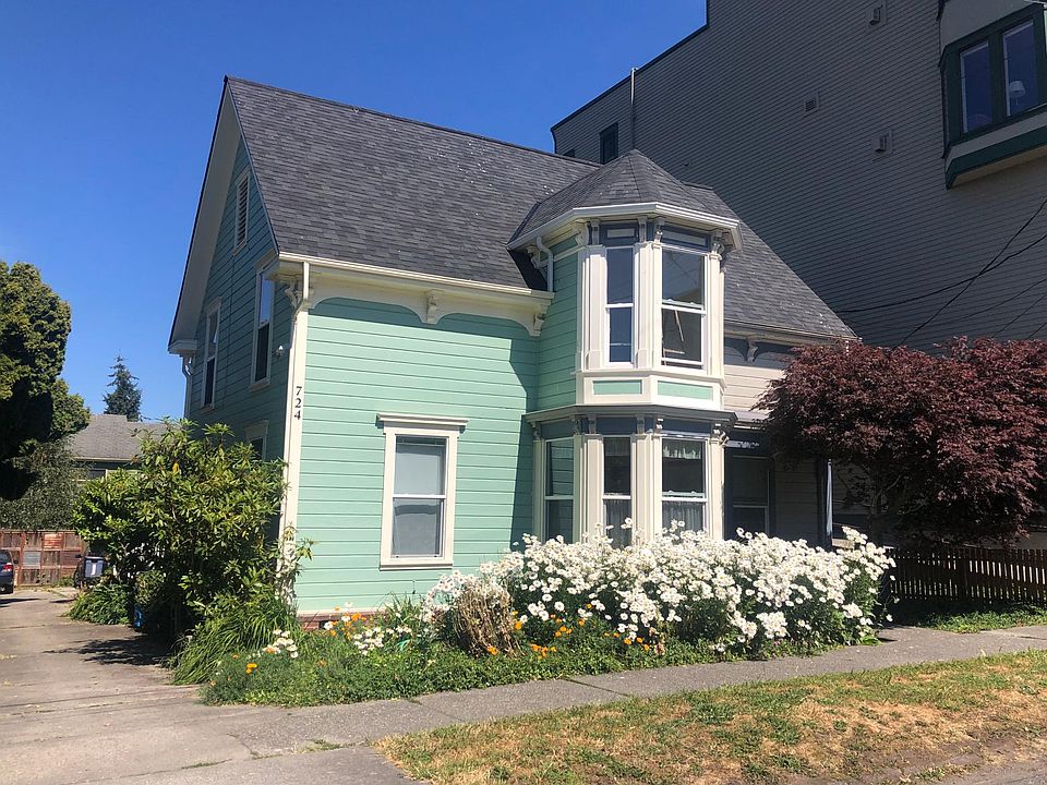 LEASE PENDING Available Feb 3rd 2025. Pet friendly Uptown Port Townsend unit in a charming Victorian 4-plex, has both a desirable location and features. Light and bright, situated right next to Aldrichs Market, and the Farmers Market (April-Dec). On the first floor, with 5-6 steps up to the front door. The two bedrooms are similar in size and each have larger walk-in closets. The bathroom is spacious too. Nice open floor plan for kitchen, dining and living. Off the kitchen is a private deck, and sweet garden to call all your own. Both the kitchen and bathroom have lovely tavertine tile & the bathroom floor is heated. There is one off street parking space, and a shared laundry room on site. Mellow neighbors. Rent is $2100/month, includes water, sewer and garbage. Tenant pays their own electric, phone and internet. A quiet, 100% housebroken pet(s) with glowing references is negotiable. Absolutely no smoking in or on the premises. Call my phone number to get more information and to schedule a showing to see in person. Come live in the heart of Uptown! No smoking in or on premises. One year lease preferred. Shared Laundry Room. Deposit is $2100. Tenant pays electric, phone and internet. Pets are possible. One off street parking space.