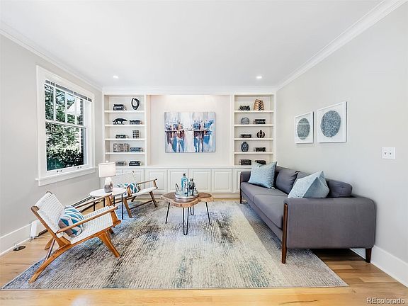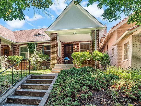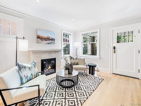 Imagine life on 7th Avenue Parkway – enjoying strolling or jogging amongst tall shade trees – with Cheesman Park and Denver Botanic Gardens just a short walk away. 724 Vine Street offers a millionaire's location without the price tag. This freshly updated and efficient property, built in 1922, is nested among the stately historic homes of North Country Club with access to all the neighborhood amenities that the area has to offer, from shopping and dining on 6th Avenue and in Cherry Creek North to parks, parkways, services and schools. A covered front porch with multi-pane glass side panels welcomes you. A new security door opens to the beautiful original wood front door with its high window. An expanse of light oak hardwood floor flows through the large living and entertaining area and dining room. The living room's gas fireplace is wrapped in limestone, which lends a French country feel. There is new paint on the walls and trim, as well as updated lighting. The dining chandelier complements the leaded-glass grilles in the upper windows. The kitchen, featuring a peninsula breakfast bar, offers Gaggenau double ovens, a gas cooktop, and a 36" LG French door refrigerator, and a new Bosch dishwasher, plus excellent drawer base cabinet storage. Off the kitchen, you'll find a private primary bedroom with an en-suite bath, a wide vanity, and an oversized shower. A sunroom adjoins the primary bedroom, which could be purposed as a home office, a nursery, or a studio. Hardwood floor extends through the primary bedroom and sunroom. That sunroom has large double-hung windows on two sides and overlooks the lush garden with its flagstone patio, trumpet vines, and numerous plantings wrapping the brick garage. The basement has a multi-purpose room that could be a second media/TV room, a guest room, or an office. A three-quarter bath has a washstand vanity and oversized shower. The laundry and mechanical/storage round out the basement. New roof and freshly painted exterior trim!