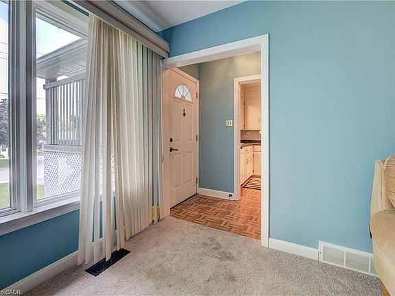 This charming 3-bedroom, 1-bath red brick bungalow offers timeless curb appeal and plenty of potential. A welcoming covered front porch with newly installed railings and handrails makes for easy access and a perfect spot to enjoy your morning coffee. Inside, the functional eat-in kitchen provides a practical space for family meals. The large family room is the perfect spot to gather for movie night or cheer on your favorite sports team. The bathroom received updates in 2021 for a fresh, comfortable feel. The unfinished basement is a blank canvas, ready for your personal touch. Create a 4th bedroom, recreation room, laundry area, and even a second bathroom if desired. A convenient side entrance leads to a small fenced area, perfect for a dog run. Sitting on a generous 72 ft x 214 ft lot, there's plenty of room for gardens, play areas, or future projects. Located just steps from the Sports Complex, future pool site, baseball diamond, soccer fields, skate park, and trails, this home is ideal for a young family looking to build equity in a well-built bungalow. Additional features include a 100-amp breaker panel, gas furnace, central air, single-car garage, and an asphalt driveway.
