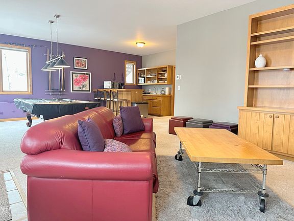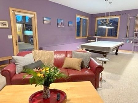 Spacious fully furnished unitQueen-sized leather sleeper sofaPool tableLarge screen tvOff-street parkingBuilt-in wood shelving unitLarge living space