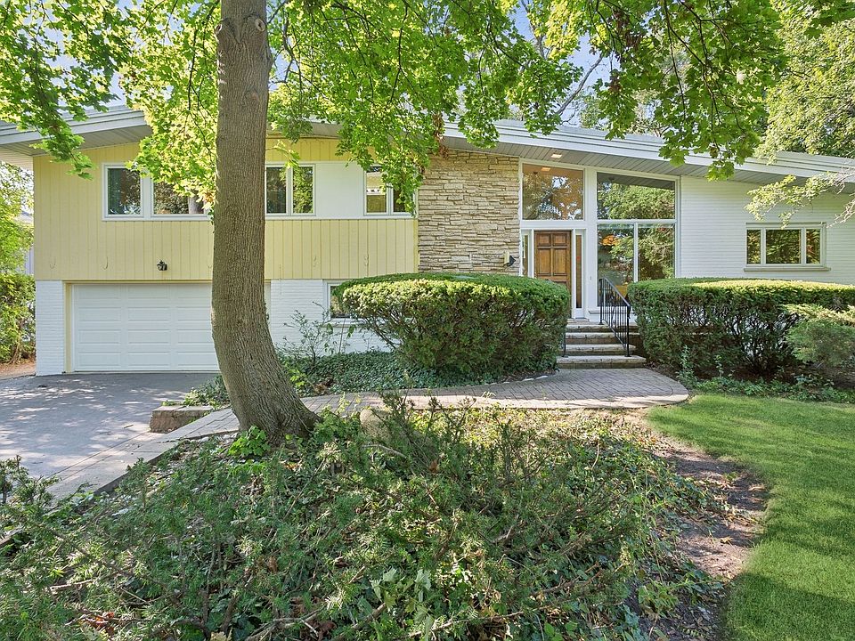 MULTIPLE OFFERS RECEIVED ASKING FOR HIGHEST & BEST OFFERS MONDAY 9/16 4PM. NO ESCALATION CLAUSE. Welcome home to this 4BR | 3.1Bath Greta Lederer Mid-Century Modern Split-Level home with sub-basement located in Glencoe's sought-after Strawberry Hill neighborhood! The residence boasts four levels of living space highlighted by expansive floor to ceiling windows in the living and dining areas, original vaulted beamed ceilings and an impressive floor to ceiling brick fireplace anchoring the living room. The vaulted beamed ceiling continues into the sun filled eat-in kitchen. Natural light and picturesque views of the professionally landscaped backyard abounds and can be enjoyed all day from the living room, dining room, and the added-on primary bedroom. The lower-level family room, along with a generous flex space perfect for an office or recreation room, features a powder room, a second brick fireplace, and access to the attached 2.5-car garage. Sliding glass doors lead to the patio, offering additional views and seamlessly blending indoor and outdoor spaces, perfect for entertaining or simply relaxing. All four bedrooms are thoughtfully located on the second level. The primary bedroom showcases a private balcony, plus features an en-suite with dual sinks, vanity and skylight. A second bedroom includes a junior en-suite, while two additional bedrooms share a full hall bath. Three of the four bathrooms maintain their original design, preserving the home's authentic Mid-Century Modern charm. The sub-basement offers ample space for recreation, storage, and a laundry room. Conveniently located across the street from West Elementary School and close to Skokie Lagoon, North Branch Trail's biking/walking paths, Chicago Botanic Garden, and quick access to Edens Expressway and spur. This spacious home is ideal for buyers willing to invest some care into this well-built MCM home. Estate Sale. Being Sold AS IS