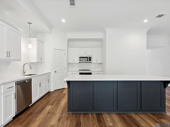 River Hills Farm is a completed, gated community by Alvarez Construction located in East Baton Rouge Parish off Innovation Park Drive. This home features hardwood flooring in main living areas, tile in bathrooms and utility rooms, and crown molding in living spaces and owner’s suites. Kitchen include oversized chef islands, custom cabinetry, gas cooktops, and 3 cm granite countertops. The Vershire floor plan offers 2,311 sq ft with 4 bedrooms and 3 bathrooms, an open-concept layout with 10’ ceilings, a kitchen with walk-in pantry and gas cooktop, and a spacious owner’s suite featuring double vanities, walk-in shower, separate soaking tub, water closet, and walk-in closet. Bedrooms two and three share a secondary bath, with a centrally located utility room and linen storage.