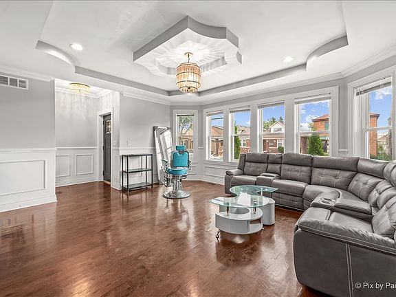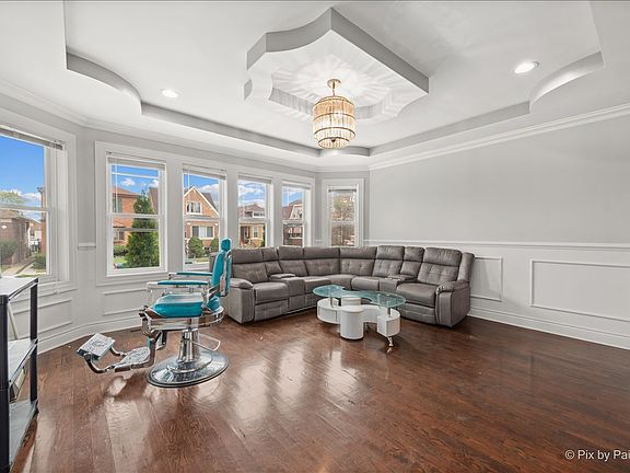 This rehabbed 5 bedroom bungalow has a spacious living room that features custom ceilings and recessed lighting that flow right into a generous dining room that awaits your festivities. The kitchen has stainless steel appliances, quartz counter top, white shaker cherry wood cabinets with European soft close drawers,Farmers sink an enclosed porch leads you to yard. 3 bedrooms on this level have closet space, one of which can be used as a walk in closet or office space. Upper level has 2 bedrooms, family room, full bath, and a walk in closet. Full walk-out basement has plenty of space for entertainment, full bath and laundry area. Just a stroll away from Marquette Park & Golf Course, close to public transportation, minutes from Holy Cross hospital. Home gets a lot of natural lighting.