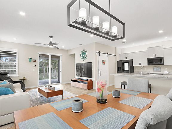 Nestled in the highly sought-after gated community of Canopy Cove, this 4-bedroom, 2-bathroom home is only 4 years old and boasts upgrades at every turn. Situated on a premium lot with no rear neighbors and serene preserve views, this home offers privacy and tranquility. Step inside to find upgraded tile flooring throughout, a spacious great room and dining area, featuring high-end fixtures and custom electric Hunter Douglas plantation shutters. The spacious laundry room was upgraded with premium washer/dryer and custom barn doors. The open kitchen is a chef's dream, complete with premium stainless steel appliances, a kitchen island/breakfast bar, wood cabinets, and luxurious granite countertops. The master suite is a true retreat, with barn doors, dual sinks, a walk-in shower, and a custom-built closet for ultimate organization and storage.
