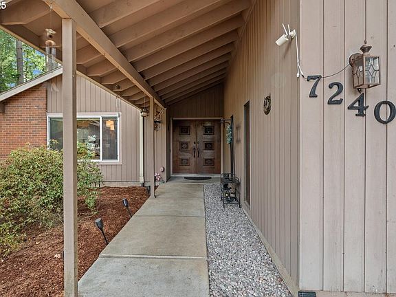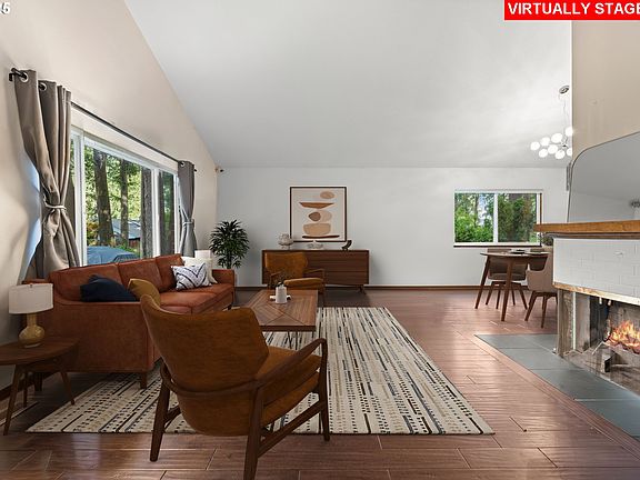 Mid-century charm, one-level living, AND a serene wooded view! This beautifully designed Hyland Hills home delivers it all. Featuring vaulted ceilings with exposed beams, a wide double-door entry, an atrium with skylight, and two fireplaces - every detail celebrates timeless architecture. The circular floor plan offers separate living with two bedrooms and a full bath on one side, and a spacious primary suite on the other. At the center of the home, the signature atrium has been finished with a heating vent, making it usable year-round. Stunning features include granite countertops throughout, engineered hardwood floors, and gas range cooking. Off the back, the enclosed porch is screened in with views of the wooded common area. All with low-maintenance landscaping, fenced yard, and private-drive setting create a serene backdrop for entertaining or relaxing. Located down the pathway to the neighborhood pool and clubhouse with low HOA Dues that cover front yard maintenance, and close to popular schools: Fir Grove, Highland Park, and Southridge. Surrounded by multiple parks and trails, with Nike HQ, Progress Ridge, dining, shopping, and Hwy 217 just minutes away. This home blends mid-century design with modern updates for comfort, function, and style.. all in one of Beaverton’s most coveted neighborhoods.
