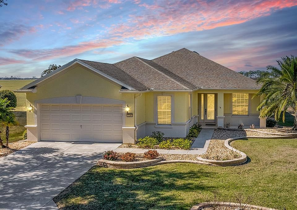 Seller is in the process of placing a BRAND-NEW Roof on this home! Resort-style living awaits in this spacious Shenandoah model primely situated on a large, premium lot with awe-inspiring Circle Square Ranch views and no neighbors directly behind. Located on a circle street in the Arlington neighborhood of the gated, 55+ Stone Creek Golf Course Community, this home provides ample living space with 2 bedrooms, 2 baths, a bonus flex room with Murphy bed, and an extended 2-car garage ready for a hobby or storing your golf cart. This stunning home features a welcoming front porch and foyer with a glass inset door opening to a light and bright living area with wood flooring accents and high ceilings complimented by expansive glass sliders offering breathtaking ranch views. Beautiful Chef's kitchen with an oversized island for casual dining and meal prep, stainless appliances, a large walk-in pantry, granite countertops, and plenty of cabinet space for your storage needs. The kitchen also provides a casual dining nook with sliders to the enclosed Florida room with retractable shades and desirable flex space perfect for entertaining with family and friends. A large outdoor patio with an awning overlooks the west-facing fenced-in backyard with landscape lighting and stunning sunset views. The Owner's Suite offers more priceless nature views, a spacious walk-in closet, and French doors opening to the en suite bath with a double sink granite-topped vanity, a step-in shower, a spa-like soaking tub, and a separate water closet. Recently painted interior walls, ceiling fans in all rooms, metal studs, a water softener, an in-ground watering system, a pull-down ladder to access lighted attic storage with decking, and an alarm system ready for connection are just a few fantastic extra features to be found in this home you won't want to miss. Move in today and start to enjoy fantastic community activities and premier amenities including a golf course, resort-style pool, health spa, trips and entertainment, and so much more!