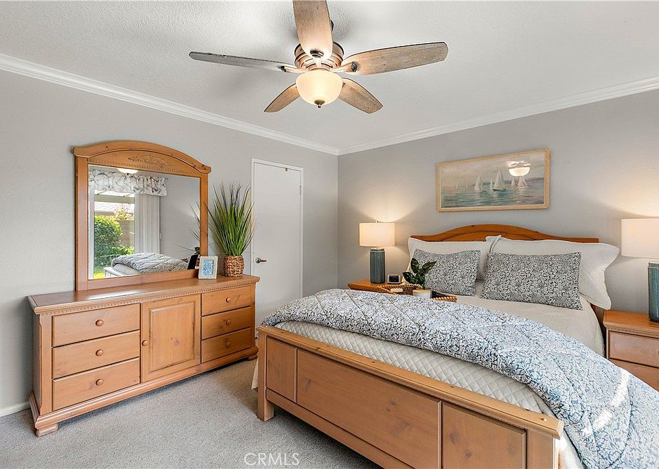 This amazing single-story home on Marine Ave. shows true pride of ownership inside and out. From the moment you step inside, the open layout and vaulted ceilings create a warm, inviting atmosphere. The living room features a cozy fireplace, perfect for relaxing evenings, while the kitchen shines with oak cabinetry, tile counters, and two spacious pantries. Enjoy modern comforts throughout — vinyl double-pane windows, dimmer switches, crown molding in all bedrooms and baths, and remote-controlled ceiling fans. The primary suite offers a walk-in closet, private slider to the backyard, and a beautiful full bathroom. Outdoors, you’ll find a lush backyard retreat featuring an Alumawood patio cover, fruit trees (orange, apple, peach, lime), and even a blackberry bush. The two-car garage includes extra lighting and storage in the rafters, while the driveway accommodates three additional vehicles. With block walls for privacy and meticulous landscaping, this home truly delivers indoor-outdoor living at its best — in a desirable, well-established neighborhood near shopping, freeways, and parks.