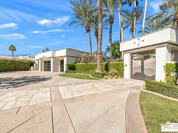INCREDIBLE OPPORTUNITY in Mission Ranch, one of Rancho Mirage's most cherished guard gated communities with park-like grounds, multiple tennis courts, horse corral with stables, that is within minutes to restaurants, retailers, and multiple country clubs! Highlights of this custom designed 7,189 sq ft property located on .75 of an acre include tall ceilings, formal and casual living areas with multiple windows and glass sliders that open to the outside, great separation of bedrooms each with their own private bath and outdoor area, private executive office, dedicated wellness room, resort-style oasis with refreshing pool and spa, and attached four car garage with storage. Attached guest casita with living room, too! If you are looking for an EXCEPTIONAL VALUE in a premier community, this IS the one to see as the arrival to this home sets a scene of magic and enjoyment! Grand foyer, living and dining areas with tall ceilings, two-sided fireplace and sliding glass doors open to the outside! Substantial kitchen with large island opens to the great room which includes casual dining area, wet bar, family room and separate media room. You will love the FLOOR TO CEILING windows and the glass sliding doors that open to the covered patio and resort-style pool! Junior Ensuite Two, Three and Four each have a walk-in closet, private bath and sliding door that opens to the outside. Private executive office looks out to the pool, too! Large laundry room with TWO washers and dryers with easy access to the attached FOUR-CAR garage. On the other side of the house is your Primary Ensuite complete with fireplace, private patio, dedicated wellness room or optional second office, and a private bath with split vanities, two water closets, two walk-in closets, large walk-in shower, and separate tub. Attached Guest House/Junior Ensuite Five has a private entrance, living room with wet bar and private patio, bedroom with views, and a private bath with a walk-in shower. AMAZING!