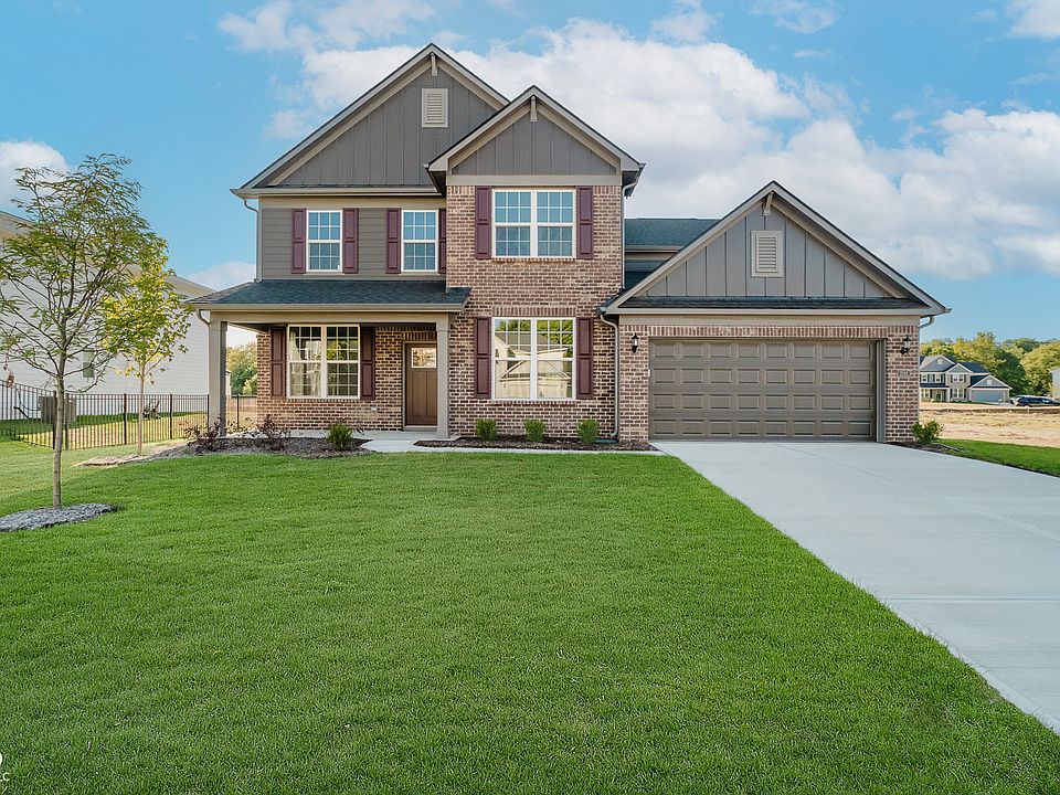 Welcome to the Riverton in Oakdale, where contemporary design meets practical functionality. This home features open, inviting spaces perfect for both entertaining and everyday living. At its heart is a chef's dream kitchen, equipped with a built-in wall oven and microwave, a 36" gas cooktop, a 36" vented hood, 42" white cabinetry, Arctic White quartz countertops, an island, and a pantry. The kitchen seamlessly flows into a cozy cafe dining area and a gathering room with a granite-surround fireplace. A formal dining room with a tray ceiling connects to the kitchen through a butler's pantry, adding elegance and convenience. A versatile flex room with doors provides privacy for a home office or study. The Pulte Planning Center and Everyday Entry help keep life organized, completing the first level. Upstairs, relax in the luxurious owner's suite, featuring a tiled shower and a spacious walk-in closet. Three additional bedrooms, each with walk-in closets, offer ample space. A spacious loft invites recreation and relaxation. The home also includes a three-car tandem garage for ample storage and parking. Oakdale offers the perfect mix of convenience and comfort in Brownsburg. Just minutes from top-rated schools, everyday essentials, and vibrant dining and entertainment, this community is designed for easy living. With a future connection to Ronald Reagan Parkway only 1-2 minutes away, commuting is effortless. Enjoy neighborhood amenities like a dog park and playground, plus the added perk of included TV and internet. Located just 2 miles from downtown Brownsburg, Oakdale is where modern convenience meets small-town charm.