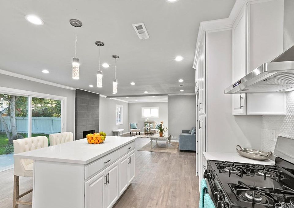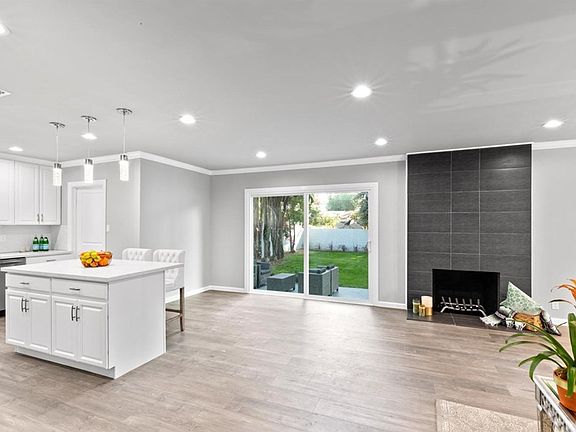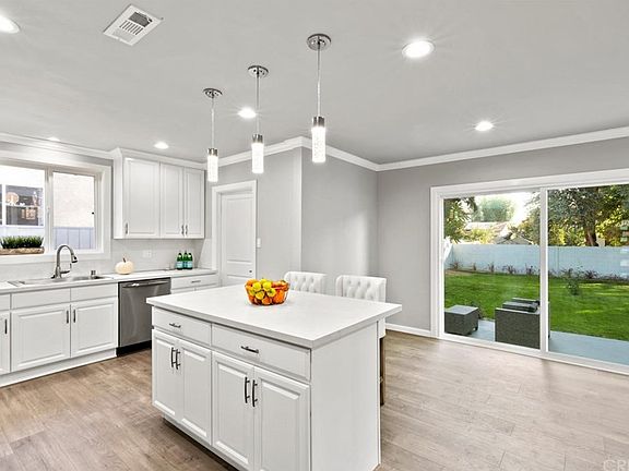 Do NOT miss out on seeing this home!!! We welcome you to this charming extensively updated 3 bed 2 bath home. The stunning open floor plan makes it easy to customize the space as desired. The kitchen is equipped with new cabinets, quartz counter tops, back splash, hood and an on-trend deep stainless steel sink. The featured kitchen island is perfect for breakfast and cocktails in the evening. The living room features a dining area, fireplace, and a view to the lovely landscaped backyard through an 8 foot sliding glass door. The backyard features a generous patio space, perfect for entertaining and plenty of green grass. Recessed lighting discreetly illuminates the space. Crown moldings provide that exemplary finished look throughout the living areas. Cleaning will be a breeze with the new laminate flooring. The master bedroom offers its own luxurious private bathroom, with a large shower with floor to ceiling ceramic tile. New energy efficient windows throughout provide a clean, finished look to this light and bright home. The laundry room off the kitchen provides addition storage and access to the backyard. The front yard includes welcoming landscape along with fresh green grass near the driveway leading into a 2 car garage. This move in ready home is a dream come true.