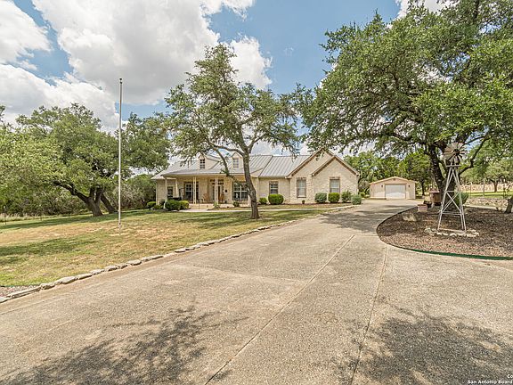 Discover the freedom of Hill Country living on 1.37 private acres with a powered workshop, multiple garage spaces, and additional storage buildings - offering room to create, build, store, and live without compromise. Beyond the gated entrance, this single-story home features a spacious, flexible layout with 4 bedrooms, including one currently used as a home office, ideal for remote work or creative pursuits. Recent upgrades such as updated flooring (2023), a new HVAC system (2024), fresh exterior paint, and a durable metal roof provide comfort and peace of mind where it matters most. The home offers easy single-level living with subtle architectural separation that creates privacy between bedroom spaces while maintaining an open, functional flow. Outside, the property truly shines. Enjoy Hill Country skies from the oversized patio, harvest fruit from mature pomegranate trees, and take advantage of the expansive, usable lot - with plenty of room for pets, gardening, a pool, or future expansion. All of this just minutes from restaurants, shopping, Canyon Lake recreation, and quick access to Hwy 281 for an easy commute into San Antonio. Opportunities like this - acreage, workshop, and single-story living at this price point - are increasingly rare. Come experience the flexibility and freedom of Spring Branch living.