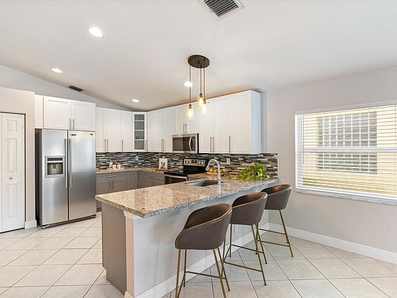 Welcome to your slice of paradise! This impeccable listing offers everything you've been dreaming of and more. With a new roof installed in June 2023 and hurricane impact windows throughout the home, your safety and comfort are top priorities in this gated community. Indulge in the convenience of low HOA fees that cover cable, internet, trash, and recycling, allowing you to enjoy worry-free living. Experience the peace of mind of a security-patrolled neighborhood while taking advantage of the clubhouse amenities, including a pool, workout room, tennis and basketball courts, and a beach volleyball area. Step outside to your own private oasis featuring a heated swimming pool and breathtaking lakefront views. Entertain guests on the screened-in patio or relax in style with stainless steel appliances and granite countertops in the fully updated kitchen. Retreat to the tranquility of the newly landscaped front yard or enjoy privacy in the fenced backyard. With easy access to 95 and the Turnpike, commuting is a breeze, and being just 5 minutes from HCA JFK Hospital adds to the convenience of this exceptional property. Don't miss your chance to call this dream home yours!