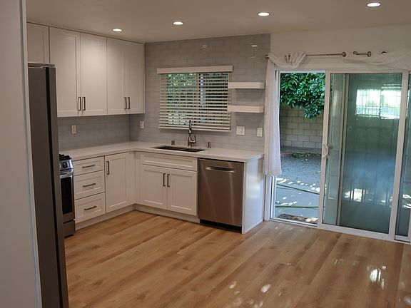 Completely and newly remodeled, gated 3/2 house in quiet cul-de-sac in prime location, close to both the 405 and 101 freeways. New laminate flooring throughout. New bathrooms, new kitchen, new, stainless steel kitchen appliances. Lots of storage in brand new cabinets. Spacious master bedroom with on-suite bathroom. Gas fireplace with marble mantle in living room. Recessed lights with dimmers. New A/C. Eco-friendly front landscaping, fruit trees and covered patio in backyard. Attached two car garage with washer and dryer. Note: new closet doors will be installed before tenant moves in. Bars will be removed from windows ( It is a safe neighborhood) No smoking. Renter pays for utilities. Maximum one pet. Applicants with 700+ credit score.