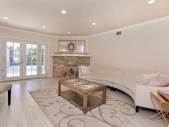Ultra chic 3BD/2BA Sevenhills home that has been meticulously remodeled with an open floor plan that is perfect for entertaining. Entry features custom leaded glass door and a beautiful chandelier. The living and dining room have rich engineered wood floors, recessed lights, stone fireplace and built-in surround sound speakers. Large french doors lead out to a manicured backyard with covered patio and canyon views. The gourmet kitchen has custom cabinets, Calacatta marble countertops and subway backsplash. Stainless steel GE Cafe Series appliances include refrigerator, microwave, dishwasher and range. Laundry room and pantry have frosted glass entry doors. Master bedroom has walk-in closet, recessed lights and crown moulding. The master bathroom has a mirrored custom built vanity, rain showerhead and detailed stonework. The exquisite guest bathroom has a textured wallpaper and modern tile accents. The electrical and HVAC systems have been updated along with new copper plumbing. 2-car detached garage and lots of storage. Don't miss this unique opportunity to own your dream home!
