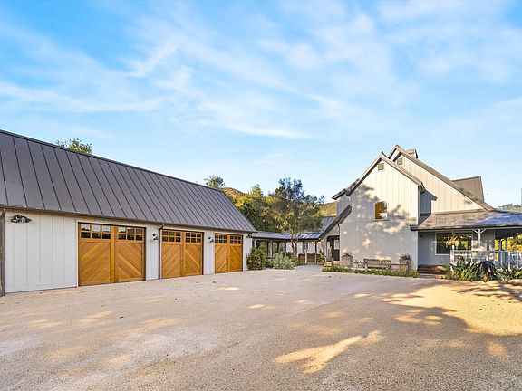 Carpinteria Foothills Estate with Organic Avocado Grove. This private, gated estate in the Carpinteria foothills offers timeless design, sustainable living, and breathtaking views over a certified organic avocado orchard and Rincon Mountain—all just minutes from Rincon Point, downtown Carpinteria, and a short drive to Santa Barbara, Ojai, and Ventura. Featured in the Santa Barbara Architecture book, the beautifully updated farmhouse blends classic charm with modern efficiency. The 4-bedroom, 3.5-bath main residence has been thoughtfully renovated for healthy, climate-conscious living, featuring all-electric appliances, dual-zone heat pump HVAC, solar power, Lifesource water filtration, no-VOC finishes, upgraded insulation, and a standing seam metal roof. Large windows and inviting indoor-outdoor spaces frame panoramic views and natural light throughout.