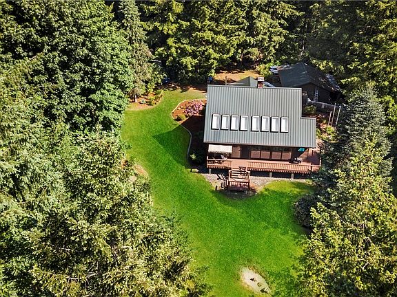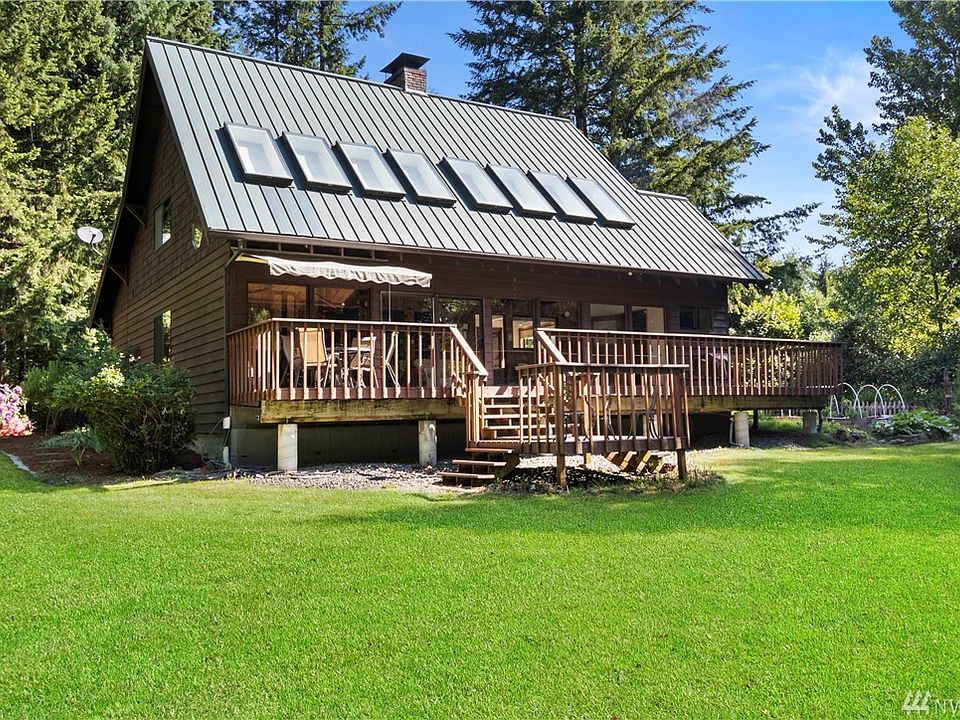 NEW ON MARKET!*The 'Envelope House' in Thurston Co*First of its kind in the area, artfully constructed by the original owner*Travel past a wildlife refuge coming home (look for the elk!), & meander down your long, private tree-lined drive to your own oasis w/Waddle Creek frontage*Situated on a secluded 5+ acre parcel, this cabin-in-the woods was constructed to be energy efficient*Master on main*Large family room for entertaining w/wood burning stove, exposed beams, & mini-split heat pump*Spacious enclosed sun room w/wall of windows*2 beds + 3/4 bath upstairs*Huge 1506 sq ft unfinished basement that could easily convert to living space (value add)*Open space + wooded areas*3 car detached garage plus a large deck*Private...unique...special*