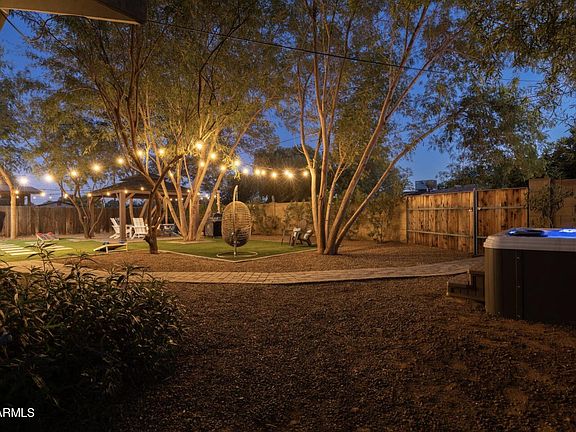 Spacious family home or successful AirBnB - you pick. Rare four bedroom plus office floor plan. Timeless kitchen with white shaker cabinets, quartz tops, and breakfast bar all open to dining and living room that is anchored with a double sided fireplace. Picturesque and low maintenance backyard with large covered patio, bistro lights, gazebo, hot tub, turf, and mesquite trees. Laundry room with two stackable W/D and cabinetry. Epoxy garage currently doubles as game room. Furniture can be included in sale. As close to Old Town as you can get without hearing the bass, this pocket is experiencing tons of turnover, new construction and growth.