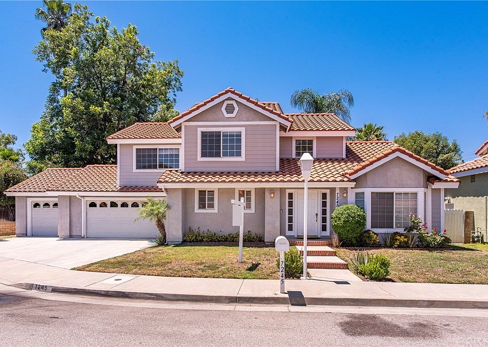 This beautiful home will win you over the moment you pull into the driveway. Nestled on a verdant lot on a picturesque cul-de-sac and bursting with Californian charm! Exquisite tile floors in the foyer help make for a grand entrance feeling the moment you open the front door with views of the spiral staircase capped by an eye-catching chandelier. A vaulted ceiling soars above your formal living room, while cheerful sunshine illuminates the area during the day. Formal living room flows to a dining area perfect for hosting friends and family. Your kitchen offers an abundance of beautiful wood-tone cabinet space, vast counter space, and a peninsula design that can easily accommodate bar seating. Relax in the wet bar area off of the second living room and enjoy a fireplace that provides warmth or ambiance on demand. Ascend the spiral staircase and you'll find a spacious master suite that includes a His and Hers sinks. The large window in your master perfectly frames the picturesque neighborhood you will be a part of. Out back you will find a lovely patio with pergola that is great for entertaining this summer. The trees and shrubs add to the beauty of your property and helps enhance your privacy. A large 3 car garage gives you lots of storage space or potential income if you decide to convert the garage into an ADU or guest house! This beautiful 3 bedroom, 2.5 bath was built in 1990 and will not last long. Schedule your virtual or on-site tour and see this beautiful home today!