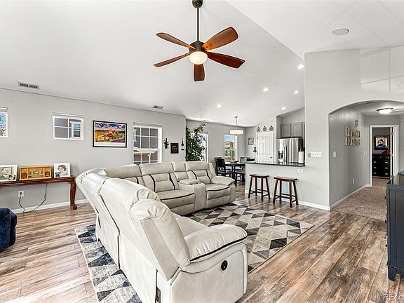 Recently remodeled and immaculate carriage-style townhome! This open-concept 2bd/2ba home has many great features including an oversize 2-car attached garage, spacious balcony, cozy living room fireplace framed with a slate stacked accent wall, central A/C, vaulted ceilings, and low-maintenance living in the sought-after Serenity Ridge community near Wheatlands and Southlands. The large kitchen has had many recent upgrades including new quartz counters, gorgeous backsplash, and stainless appliances. The breakfast nook, opens into the bright and airy living room with vaulted ceilings. The primary suite has a large walk-in closet and en suite five-piece bath. The master retreat was an optional 3rd bedroom by this builder, and could be easily converted to a formal third bedroom, gym, or study. The spacious deck overlooks the community park and is perfect for relaxing, dining, and entertaining. Wonderful location near shopping, nightlife, and restaurants all within walking distance or enjoy the Blackstone Country Club a short drive away.