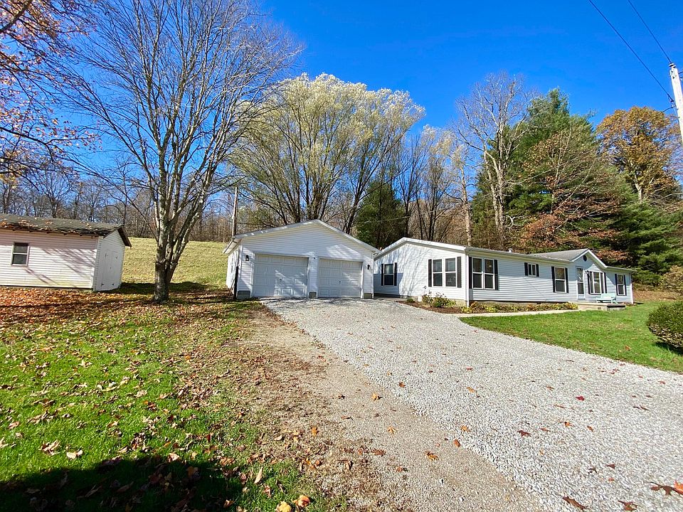 Move in ready with new flooring throughout! Spacious floorplan with kitchen, breakfast nook, dining room, office, large living room, first-floor laundry, 3 bedrooms and 2 full baths. 2 car detached garage, additional outbuilding, and covered back deck all on 4.33 acres!