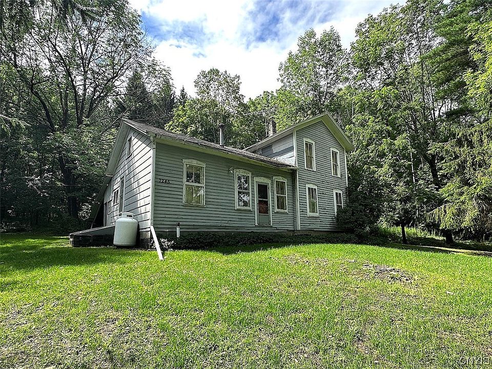 The house has 1,240 sq. ft., 3 bedrooms, and 1 full bathroom. There is a kitchen, dining area and living room with a first floor bedroom. Upstairs are 2 additional bedrooms and a partial walk-up attic. A new septic was installed in 2022, and the water source is a spring. The home has a newer furnace.