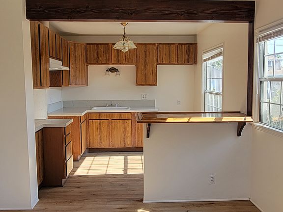 A cozy cottage-style 1 bedroom, 1 bathroom unit with lots of natural light. Step into the living room with plenty of large windows that brighten up the space. The kitchen features rustic wood cabinets and a bar top that opens to the living room for a nice open feel. Laminate flooring runs throughout the entire unit. Parking is right in front of the unit for easy access. There is also one of our three tenant-use pools located just around the back for relaxing or cooling off after a long day.