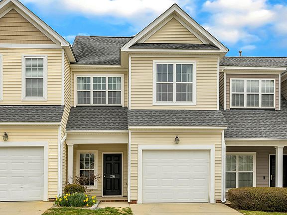 Open-concept townhome in popular Mulberry Park! While technically a 2 bedroom (mls requires 100 sq. feet), there is a third 8 X 8.75 room upstairs perfect for office/nursery/workout space. Unit has been kept in immaculate condition. One of the most coveted floor plans with its openness and abundance of light. Large kitchen and big island are open to family room and dining area. Beautiful hardwoods on entire 1st floor. HVAC, carpet and most appliances new in '22! HUGE master and bath. Fantastic enclosed porch, outside patio and rare small yard. Garage on top of if it all!  Quiet, friendly neighborhood. Next to Brier Creek shopping, minutes to RDU and an easy drive to Raleigh, Durham and Chapel Hill. Move in as early as late March!