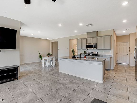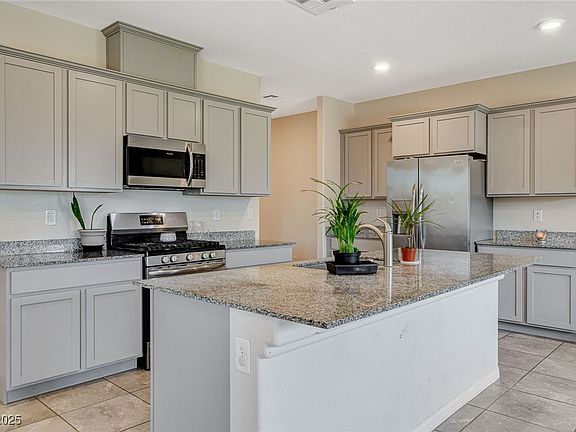 Spacious 2-story home offers 4 bedrooms plus a loft, 2.5 bathrooms, and 2,482 sq. ft. of thoughtfully designed living space. The first floor boasts 9' ceilings, two-tone paint, and tiled flooring throughout—perfect for entertaining. The kitchen is equipped with stainless steel appliances, granite countertops, 36" cabinets, and a convenient BBQ stub just outside. Upstairs, enjoy generously sized bedrooms and a versatile loft. The insulated 2-car garage is pre-plumbed for a water softener, while the paver driveway adds curb appeal. Refrigerator, washer & dryer are included. Located in the vibrant and growing North Las Vegas community of Valley Vista, residents enjoy access to multiple parks including Galaxy, Atlas, and Orion’s Belt—featuring pickleball, basketball, volleyball, dog parks, playgrounds, walking/biking trails, and upcoming splash pad. Modern comfort meets community living in this dynamic master-planned neighborhood close to shopping, dining, and outdoor recreation.