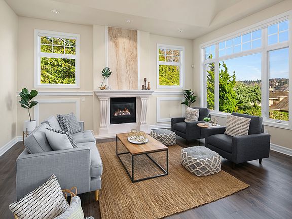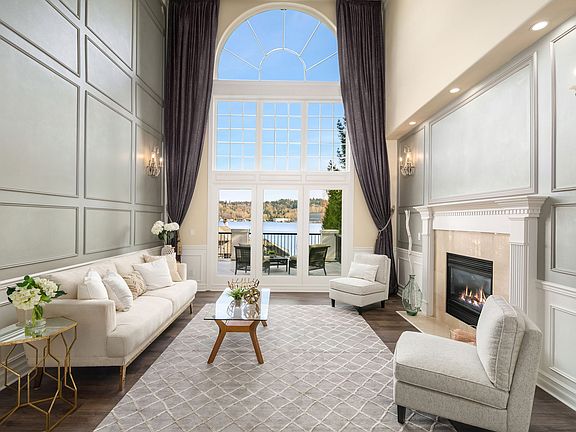 Welcome to Mercer Island Luxury: an impeccably appointed residence that meets 15 feet of no-bank Lake Washington frontage. The 5 bedroom, 4.5 bath home spans 4,380 square feet of open living space oriented to frame views of the lake and mountains. A grand entry sets a tone of relaxed elegance, extending into an opulent formal living room with custom drapery and gorgeous views. Whether you are looking for a casual night in or grand celebration, the open concept kitchen and great room serve as the perfect palette, as lake views meet stainless steel appliances, an island with gas range, grand stone fireplace and an entertaining deck for summer cookouts. There is a second high-heat kitchen for additional prep and cooking needs. On more formal occasions, the spacious dining room provides the perfect ambience. A main level office is ideal for those working or learning remotely. The upper-level primary suite is a true retreat, complete with two fireplaces (one in the bedroom and one in the ensuite bath) and a Juliette balcony. The spa-like bath evokes tranquility with a soaking tub, separate water closet, dual vanities, and stunning finishes. Moving to the daylight basement, an open family room with wet bar and covered patio offer an added layer of year-round entertainment. A light guest suite with updated bathroom finishes out the floor. Additional features include an attached three-car garage for the hobbyist, an ideal East Mercer location, and access to award-winning Mercer Island schools