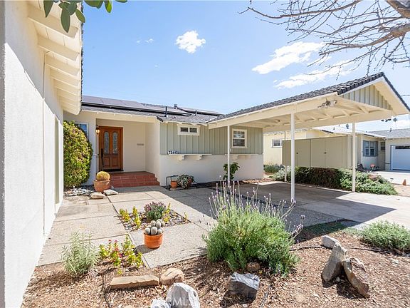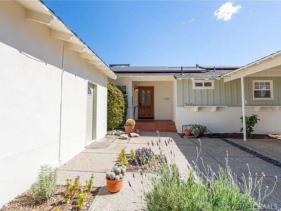 This beautiful home in nestled on a picturesque tree lined cul-de-sac in one of Winnetka’s most sought-after family neighborhoods, and as soon as you lay your eyes on it you’ll immediately recognize the owner’s true “Pride-Of-Ownership.” Here are just a few of its many other fine features: Its drought tolerant landscaping and freshly painted exterior and interior enhance its eye-catching curb appeal. The elegant custom front door with lead glass inserts swings open to a freshly painted 1,860 square foot open concept floor plan that is in “Move-In-Condition” with an aesthetic blend of wood, tile, and plush carpet flooring. The spacious living room is bathed in natural light and has a wood-burning floor-to-ceiling brick fireplace with gas starter. The family’s cook is going to truly appreciate the kitchen’s recessed lighting, garden window, abundant cabinets, ample granite counters with full tile back-splash, durable dual basin stainless steel sink, built-in stainless-steel appliances, glass top electric range with warming zone, stainless steel refrigerator, plus the convenience of the adjoining dining area with its huge garden window and direct patio access. 4 spacious bedrooms, A total of 1¾ bathrooms: BONUS! The garage has been converted into permitted living space that can be used as a 5th bedroom, office, or recreation room. Washer and dryer are staying in the functionally located laundry area. The energy efficient dual pane windows and paid for leased solar panels will help keep your utility bills low, Central air and heat for year-round comfort. You’re going to appreciate and enjoy the backyard’s privacy fencing, covered entertainer’s wood deck and patio, and sweet orange tree, rare key lime tree, and lemon tree. Plenty of room to securely park your vehicles off street under the 12’x18’ permitted carport. All of this sits on a large 7,014 square foot lot that is within walking distance of Sutter Middle School, mass transportation, and close shopping, grocery stores, Pierce College, Warner Center, Topanga Mall, and The Village at Topanga.