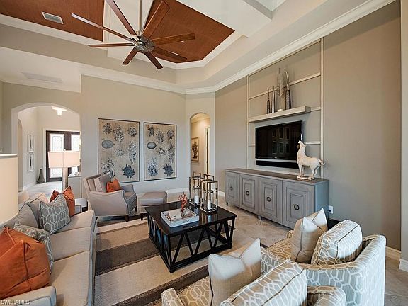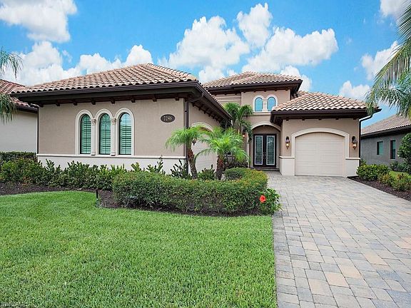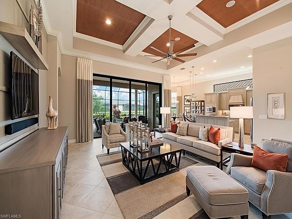 H.13213 - Custom designed from the ground up, this home offers the finest of interior design, upgraded appliances, quality furnishings including such brands as Hooker and Stickley and amazing designer finishes. Located on a south-facing premium lot, this residence is perfect in every way. The summer kitchen and gracious lanai space really offer the best of Florida living. From the moment you walk through the leaded glass front doors, the quality of construction and design will surround you. This Jasmine II floor plan by Stock is part of their finest Sapphire Series with Impact Glass throughout, 10' sliding glass doors to enjoy the lake view, crown molding and spacious cabinetry. Offered furnished with a few personal exclusions. "Bring Your Highest Expectations".