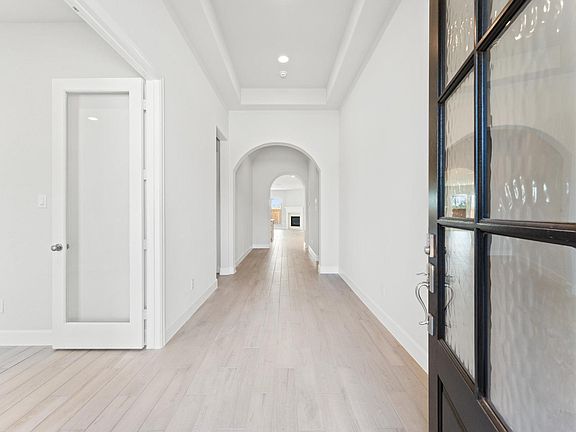 BEAUTIFUL 12-FOOT CEILING ENTRY, HOME OFFICE WITH FRENCH DOORS, EXTENDED ENTRY LEADS TO OPEN KITCHEN, DINING AREA AND FAMILY ROOM. KITCHEN FEATURES CORNER WALK-IN-PANTRY GENEROUS COUNTER SPACE AND ISLAND. THE DINING AREA FLOWS INTO THE FAMILY ROOM WITH A WALL OF WINDOWS AND A WOOD MANTEL FIREPLACE. THE PRIMARY SUITE INCLUDES A DOUBLE-DOOR ENTRY TO THE PRIMARY BATH WITH DUAL VANITIES, A GARDEN TUB, A SEPARATE GLASS-ENCLOSED SHOWER, AND TWO LARGE WALK-IN CLOSETS. A GUEST SUITE WITH A PRIVATE BATH ADDS TO THIS SPACIOUS ONE-STORY HOME. EXTENDED COVERED BACKYARD PATIO. MUD ROOM OFF TWO-CAR GARAGE.