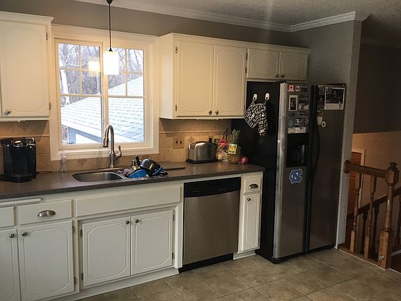 Absolutely stunning updated 4 bed / 2 bath with so many upgrades! The roof was replaced in 2017 and the gutters in 2008. Stainless steel appliances including a brand new 5 burner gas range. There is plenty of natural light including built in under cabinet lighting. The bathrooms have all been updated including a double sink granite vanity in the main bath. There are gorgeous hardwood floors in the entire lower level with an additional family room and gas burning fireplace. The dining room has been updated with gorgeous white scaffolding which makes the dining room stand out. The deck is directly off the upper family room that has newer railings. The deck leads to the entire gorgeous fenced in yard with mature trees, plants and beautiful grass. The house includes a custom built painted concrete patio with shed. The garage flooring is brand new epoxy in addition to a built in workshop. This home is located in a quiet neighborhood at the end of a cul-de-sac.