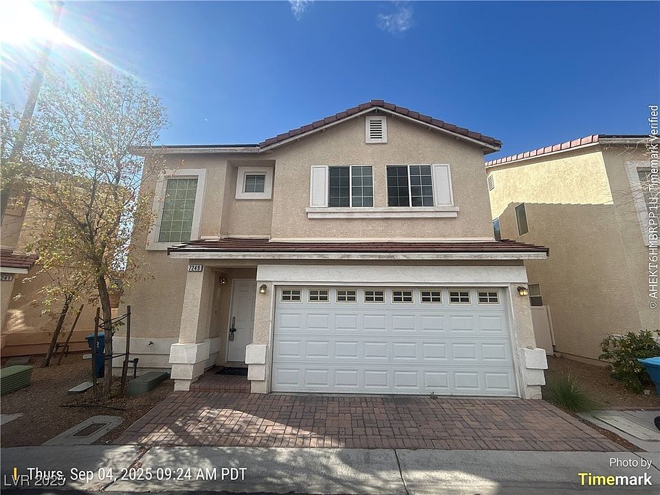 Two story home in the Copperhead Trails neighborhood in SW Las Vegas. Some new flooring in the kitchen & baths. Large open living room with dining & kitchen. Kitchen counters are ceramic tile. There's a breakfast counter and ample cabinet space. the dining area has a slider to the patio. A convenient stack washer & dryer closet upstairs. A downstairs 1/2 bath & an upstairs full hall bath. The master suite has a 3/4 bath with a walk-in closet. There's a 2 car automatic garage and a low maintenance yard.