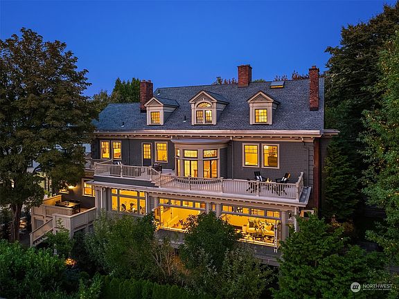 Magnificent Georgian Revival known as the Skinner Mansion, one of Seattle’s most iconic homes, a testament to a bygone era of elegance and sophistication. Spectacular living room with exquisite millwork, broad bay window, and paneled pocket doors. Epicurean kitchen with informal eat-in area adjacent to a grand formal dining room. Gorgeous stairwell with curved leaded glass and city/sound views. Second level with 4 bedrooms, each with an ensuite bath. Primary suite with opulent walk-in closet and private terrace. Lower level with pub-like recreation room, wine cellar, fitness room, and nanny quarters. Spacious third floor, perfect for work or play. Expansive, private park-like grounds with gardens, patios, and lawns. A timeless masterpiece.