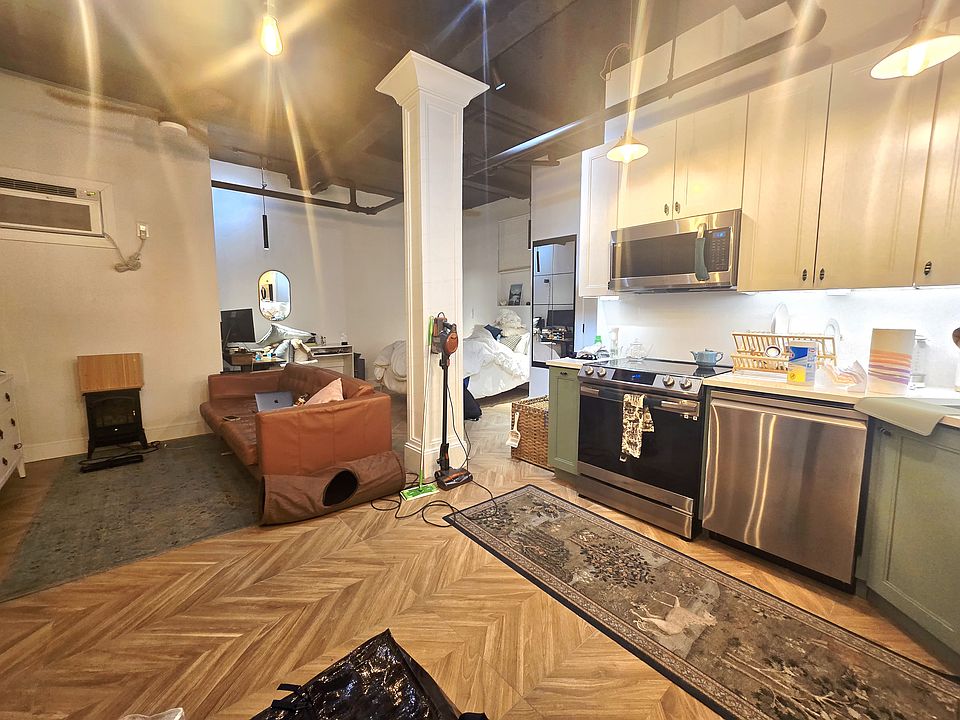 *IF INTERESTED MUST REPLY WITH EACH OCCUPANT INCOME, CREDIT AND PHONE NUMBER ON APP/WEB* - in unit WASHER/DRYER - heated bathroom floors - body spray and rain shower - Samsung DISHWASHER - ceiling fans and led accent lights strips - cats ok 1 block to train 1 block to supermarket Shops and restaurants all near by BRAND NEW STUDIO WITH SLEEPING ALCOVE ALL UTILITIES INCLUDED IN RENT: -HEAT INCLUDED -HOT/COLD WATER INCLUDED -GAS INCLUDED -ELECTRIC INCLUDED (during summer months if use of the included ac unit, tenant will be required to pay an additional $50 for the added electric during that time) No brokers fee $20 credit check $50 monthly pet rent if any (ESA no charge)