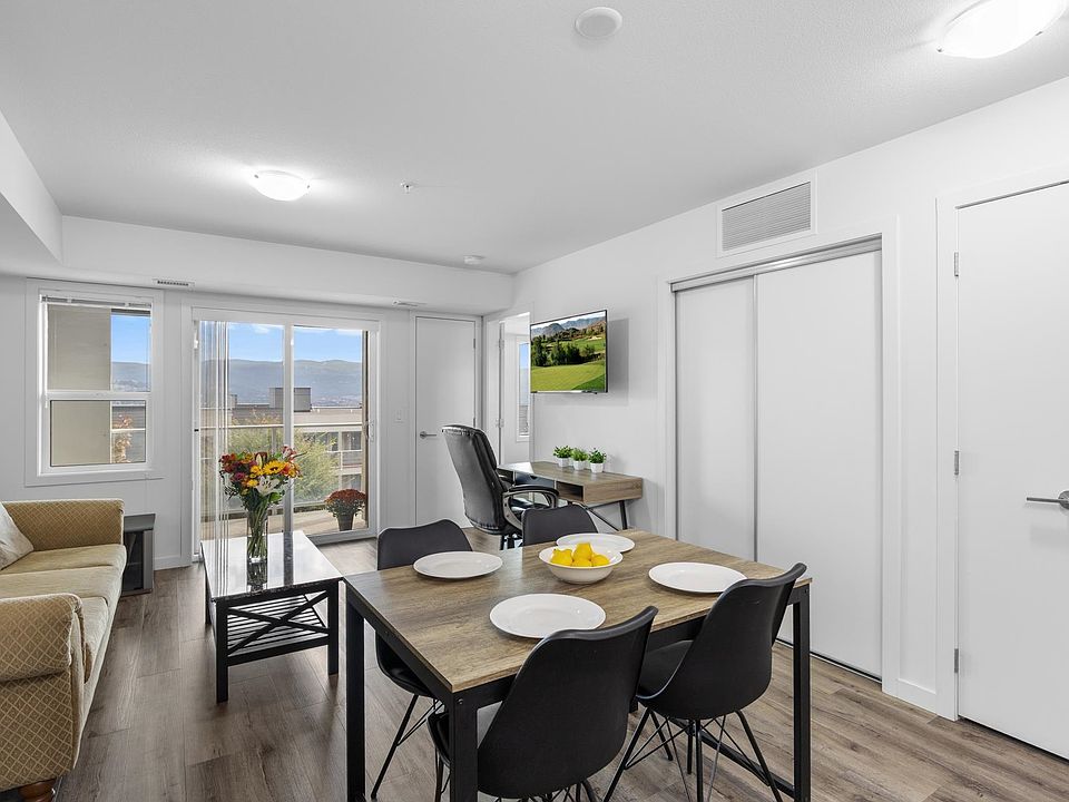 STEPS FROM UBCO! PERFECT FOR STUDENTS & INVESTORS! Live, study, and thrive just steps from UBC Okanagan in this bright, south-facing apartment filled with natural light and sweeping mountain views. Feel at home in a like-minded, welcoming community that balances independence and connection — ideal for students, professionals, or anyone seeking a supportive environment. Enjoy modern comfort with secure parking, pet-friendly living, and unbeatable convenience. With rentals allowed in a prime location that offers easy access to transit, the airport, nearby cafés, shops, Okanagan Lake, and the heart of downtown, this property has it all! Whether seeking a smart investment or a place to call your own, this vibrant Kelowna home offers an unmatched blend of lifestyle, community and opportunity!