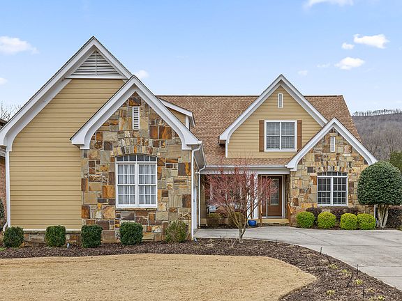 Welcome home, where you can unwind and find solace in the fact that the ''to-do'' list has already been taken care of. This elegant yet approachable home on the Black Creek Club course is situated in the ''Cottages'' section on a quiet cul-de-sac street with views of Raccoon Mountain, the 11th green, and a babbling creek. The home features an open floor plan flowing seamlessly from kitchen with large island to vaulted ceilings in the living room letting in plenty of light and the views! A separate dining room, breakfast area, and seating at the island provide options for casual or formal dining. The primary bedroom on the main floor features a private covered porch and two large walk-in closets. Also on the main floor is a second bedroom or versatile space to be used as you see fit. Upstairs you'll find 2 additional large bedrooms sharing a full hallway bath. The huge bonus room with attached full bathroom leads to 2 other rooms; plenty of space for all of your needs. Enjoy the outdoors from the large covered back deck or patio area with the option to add a seating area by the recently cleared creek bank.
