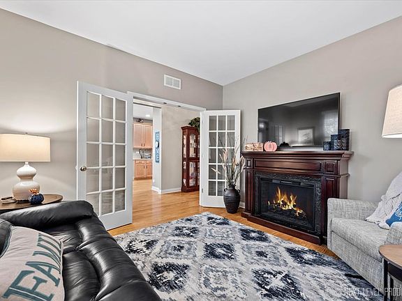 Gorgeous east-facing ranch home is show-ready and looking for new owners! Many updates including oak hardwood flooring (2021), roof (2020), siding on back of home (2020), HVAC (2020), blinds on every window, and neutral paint throughout. This home is so warm and inviting. It includes an eat-in kitchen with maple cabinets, recessed lighting, double oven, and Corian counters. For more casual mealtimes, there is additional bar-height seating between the kitchen and family room. Cozy up in the family room and enjoy the gas fireplace and take in the backyard views through the sliding glass doors. Towards the front of the home sits a den which can be used as a sitting or reading room or repurposed as a bedroom if needed. The master bedroom includes a walk-in closet and an ensuite bathroom with walk-in shower. The back patio includes a stone patio with mature trees and lattice privacy fence. Garage is heated, includes epoxy flooring and shelving for storage. Owner is looking for a 30 day or sooner close. ***Offering a 1-year home warranty as part of sale!*** Steeplechase of Oswego is a 55+ community that offers a community pool, clubhouse & fitness center with low monthly association dues. The community is located just minutes from shopping, dining, and downtown Naperville, Aurora, Oswego, and Plainfield. This is the one you've been waiting for - start the new year off right in your beautiful new home!