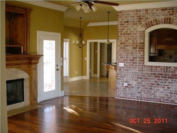 Split bedroom plan. 4 bedrooms. 2 baths. Approximately 2055 s.f. Outside features full front porch, full wood privacy fence and covered patio in rear. 2 car garage. Open living room dining room with woodflooring, brick wall, and built in above fireplace mantle for large flat screen tv and equipment. Laundry room. Kitchen has granite coutertops with ceramic tile backsplash and flooring. Breakfast area. Stainless steel applinaces and ceramic flooring with pantry room.
