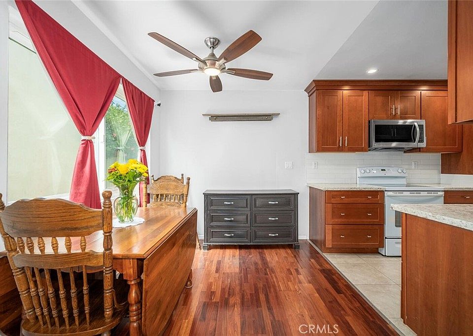 Fantastic Investment Opportunity! Desirable end-unit condo in a small, well-maintained complex in the highly sought-after Rose Park neighborhood with a Deeded Parking Space! This 2-bedroom, 1.5-bath home features a beautifully remodeled kitchen (2018) with Quartz countertops and Jamestown Cherry cabinets. Wood flooring downstairs with tile flooring in the kitchen and bathrooms, along with double-pane windows throughout. Townhome-style layout offers privacy and comfort—perfect as a starter home. One secured parking space included. Conveniently located near major freeways for an easy commute, and just a little over a mile from the beach—making walking or biking a great option. Don’t miss this opportunity!